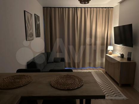 Квартира оборудована всем необходимым для комфортного проживания: вместительные шкафы, телевизор, кондиционер, обеденный стол и стулья, диван с независимым пружинным блоком и спальным местом 150х200см, интернет (Wi-Fi), робот-пылесос.
