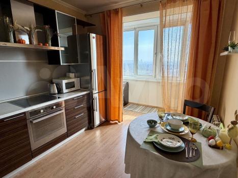 Собственник. Сдаю светлю однокомнатную квартиру на девятом этаже монолитно-кирпичного дома 2025 года постройки. В квартире выполнен свежий евро ремонт, что создаёт уютную атмосферу. Просторная кухня оснащена современной техникой: холодильник, варочная панель, духовой шкаф и микроволновая печь. Из мебели — двуспальная кровать, удобный раскладной диван, два стола, стулья, тумба, шкаф для одежды - все, что нужно для комфортного.