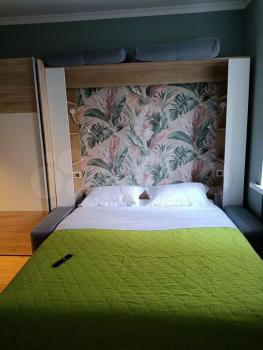 светлая, уютная, теплая квартира, в комнате: кровать 1,20 новый матрас ". зима-лето " диван раскладывается в перед "аккордеон", шкаф-купе, телевизор, тумба и стеллажи; кухня, санузел совмещённый, и небольшая уютная прихожая