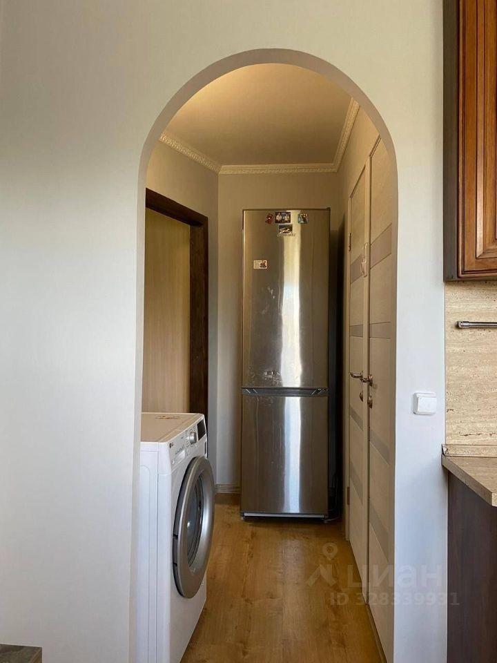 В зале - большой шкаф купе, новый диван со спальным местом. В спальне кровать размером 160 на 200. На кухне: газовая плита с электрической духовкой, холодильник, стиральная машинка. Кухня оборудована газовой колонкой.