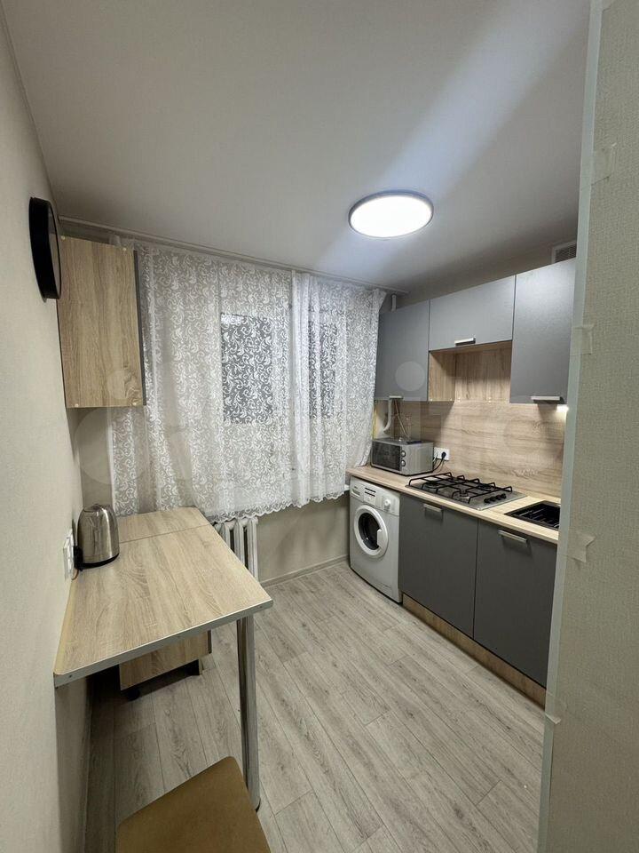 В квартире выполнен косметический ремонт. Комнаты изолированные, что обеспечивает комфорт и приватность. Из мебели имеются шкафы и диван. В кухне установлена современная бытовая техника, включая холодильник и плиту.