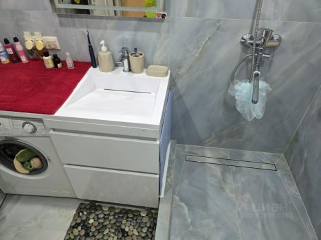 Кухня оборудована всем необходимым: холодильник, плита и микроволновая печь. Ванная комната совмещенная, оснащена современной душевой кабиной и стиральной машиной.