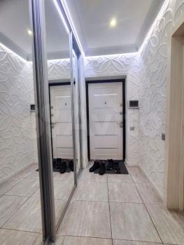 Сдаётся уютная студия с евроремонтом в современном кирпичном доме 2014 года постройки. Общая площадь квартиры составляет 34 кв. м, жилая площадь — 28 кв. м, а площадь кухни — 5 кв. м. Студия расположена на 24-м этаже 25-этажного дома, окна выходят на улицу, а потолки высотой 2.8 метра создают ощущение простора.