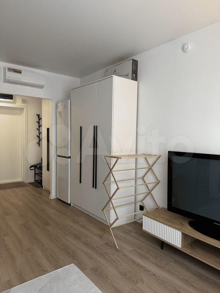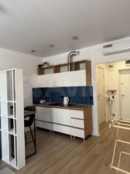 Сдаётся уютная студия в современном монолитном доме, построенном в 2022 году. Квартира расположена на 6 этаже 14-этажного здания. Общая площадь составляет 23 кв. м, из которых 21.5 кв. м жилая. Высокие потолки 2.99 метра создают ощущение простора. До метро Прокшино 20 минут пешком, 5 мин на автобусе. Новая мебель, балкон с дополнительным шкафом.