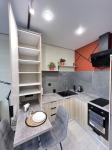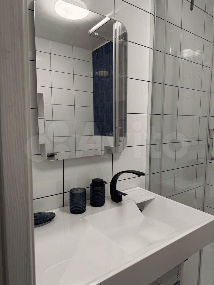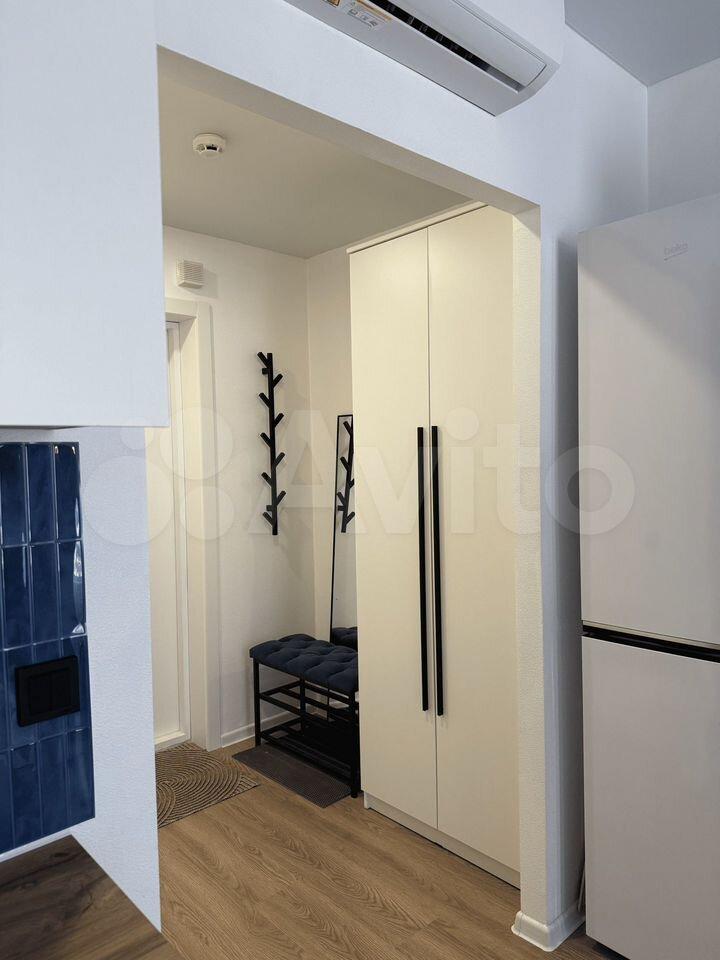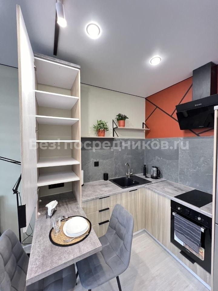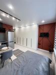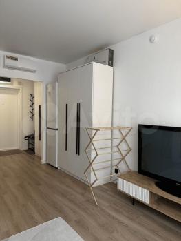 В квартире: два больших светлых панорамных окна в пол, шторы блекаут, диван-кровать двухместный, телевизор, рабочий стол со стулом, встроенная кухня с раковиной, электрической плитой, вытяжкой, большим холодильником и удобными шкафчиками для хранения. Большой гардеробный шкаф, большое зеркало в полный рост, удобная прихожая с местом для хранения верхней одежды и обуви. Удобная ванная, стиральная машина, раковина с зеркалом с подсветкой. Кондиционер. Продуманная система освещения, удобные розетки в нужных местах.