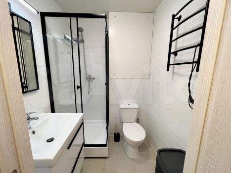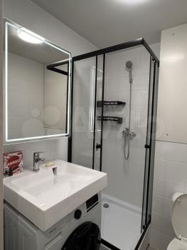 Санузел совмещённый (душевая кабина). Окна на улицу во двор (нет дороги).