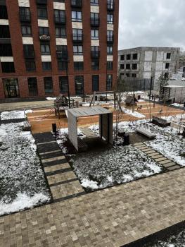 Современный жилой комплекс с закрытым благоустроенным двором: детские площадки, зоны отдыха.