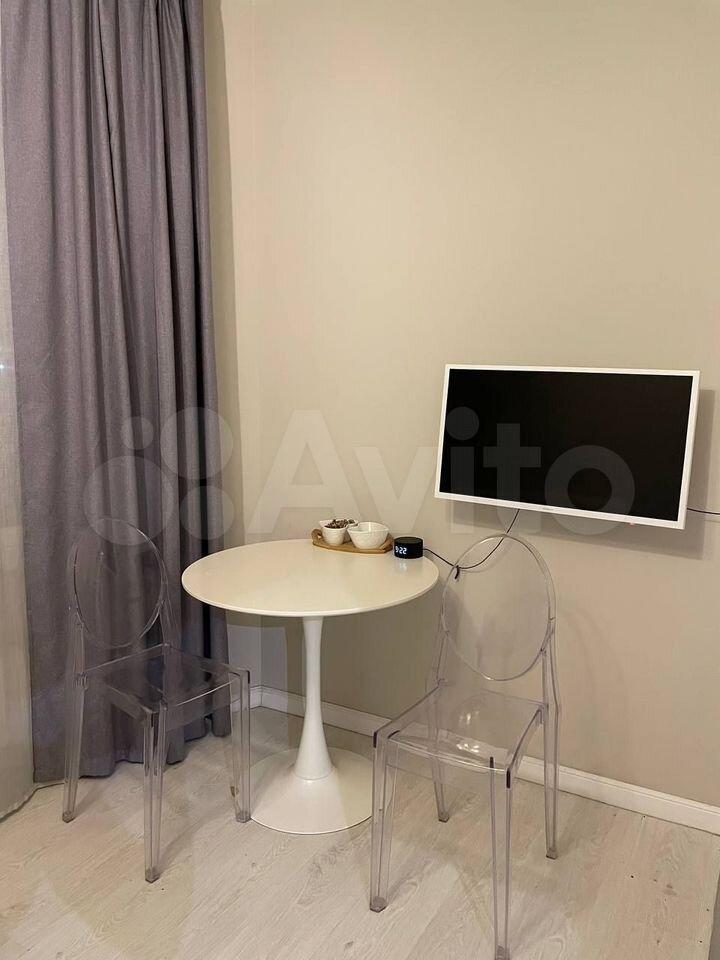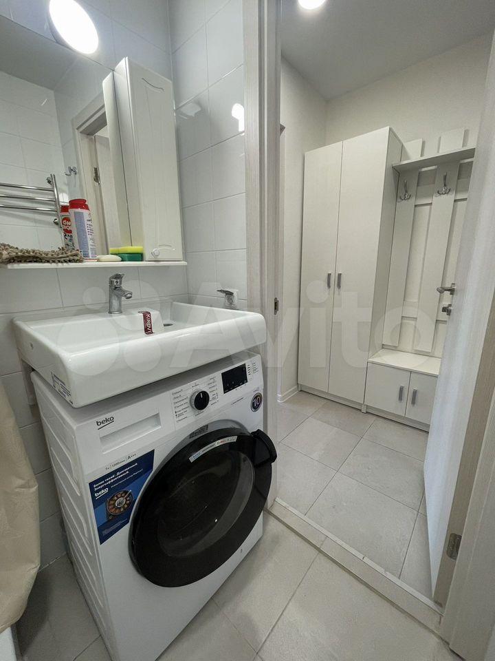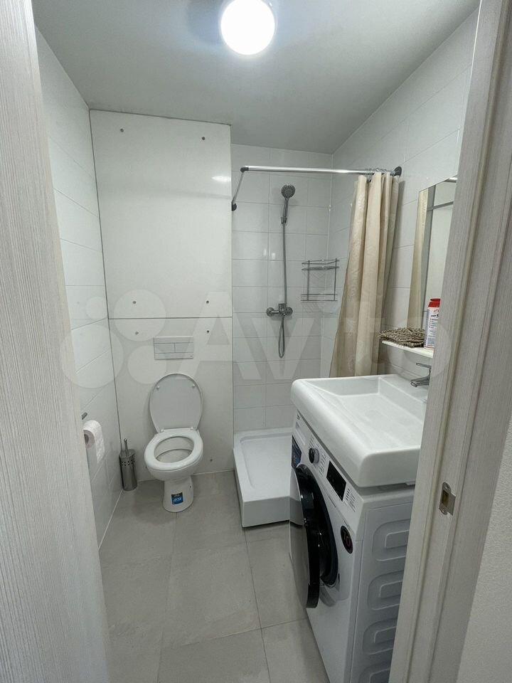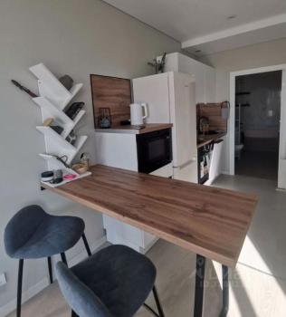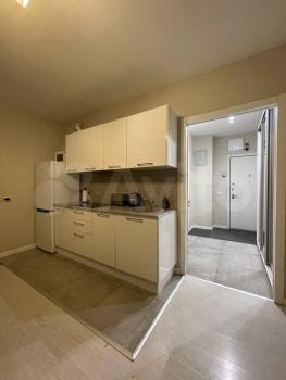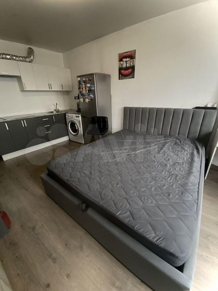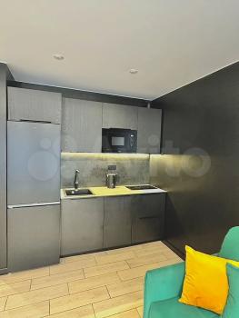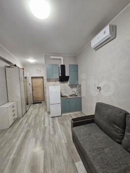 Квартира после евроремонта, полностью готова к комфортному проживанию. В студии есть вся необходимая мебель как в комнате, так и на кухне. Из техники — кондиционер, холодильник и стиральная машина. Ванная комната оборудована душевой кабиной. Подключен интернет, поэтому можно быть всегда на связи и работать удаленно.
