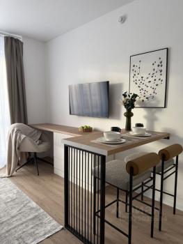 Студия полностью меблирована и оснащена всеми удобствами для комфортного проживания: