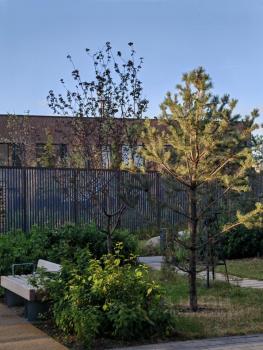Для машин есть две небольших парковки возле центрального входа. Вся остальная территория комплекса рассчитана для пешеходных прогулок. Есть лавочки, теннисные столы, красивая подсветка. Вход на территорию только для резидентов