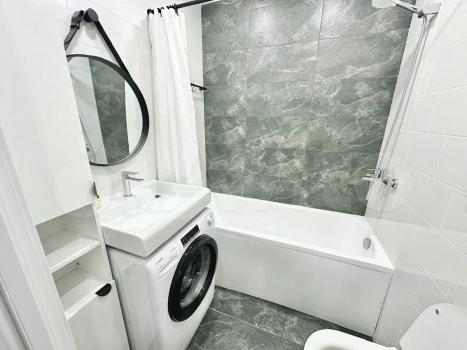 В ванной комнате расположена стиральная машина с сушкой, которая за 3ч делает вещи чистыми, сухими и тёплыми :)