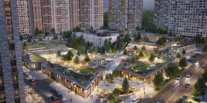 Внутреннее благоустройство новостройки составят собственный детский сад на 325 мест, школа на 825 мест, торговый центр и подземный паркинг на 846 машиномест. Так же на первом этаже открывается студия Йоги и растяжки. В соседнем доме Хfit. WВ , ОZОN в каждом доме.