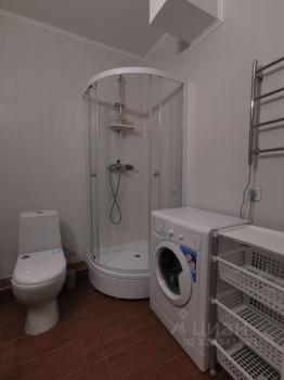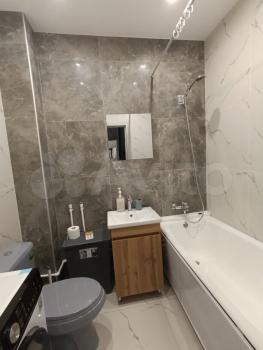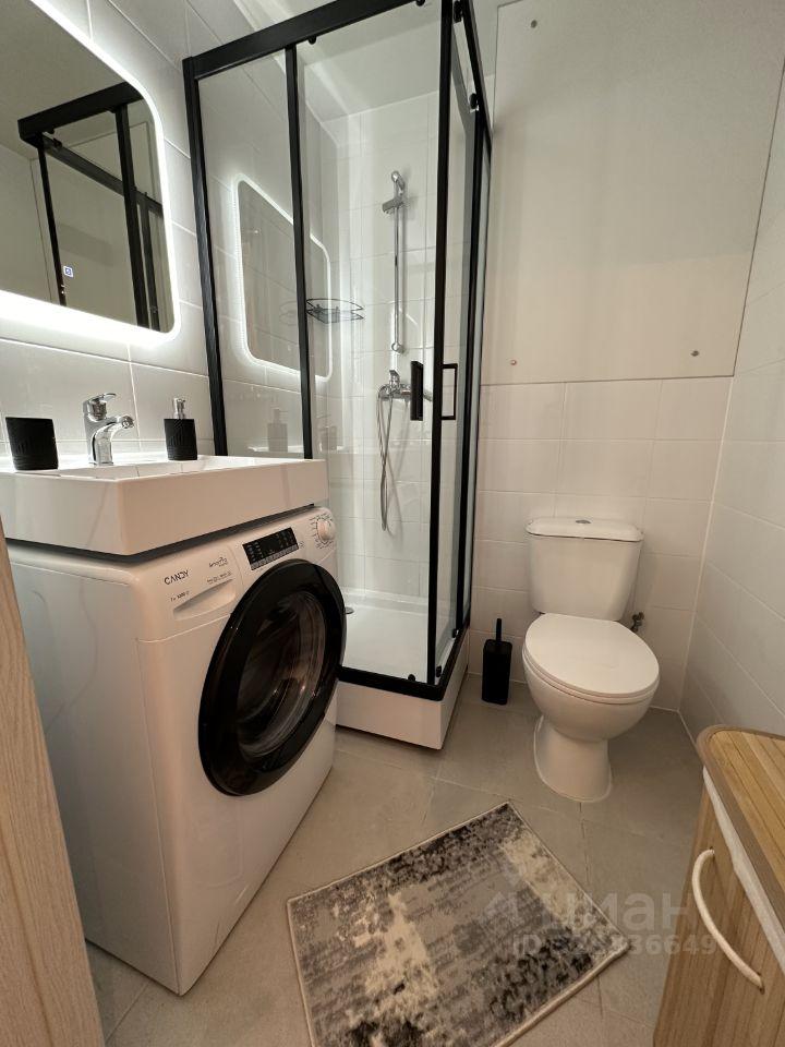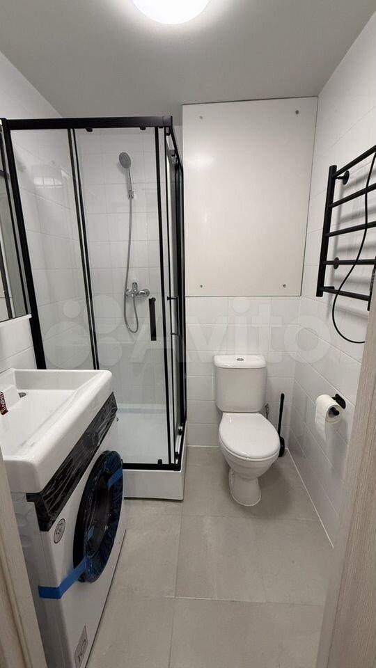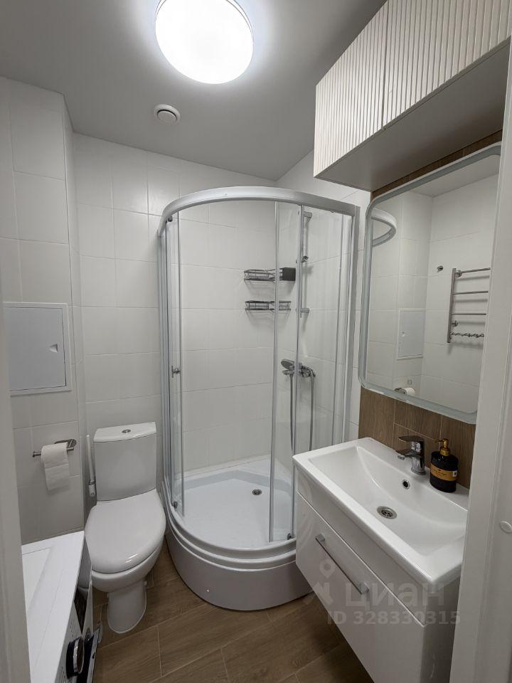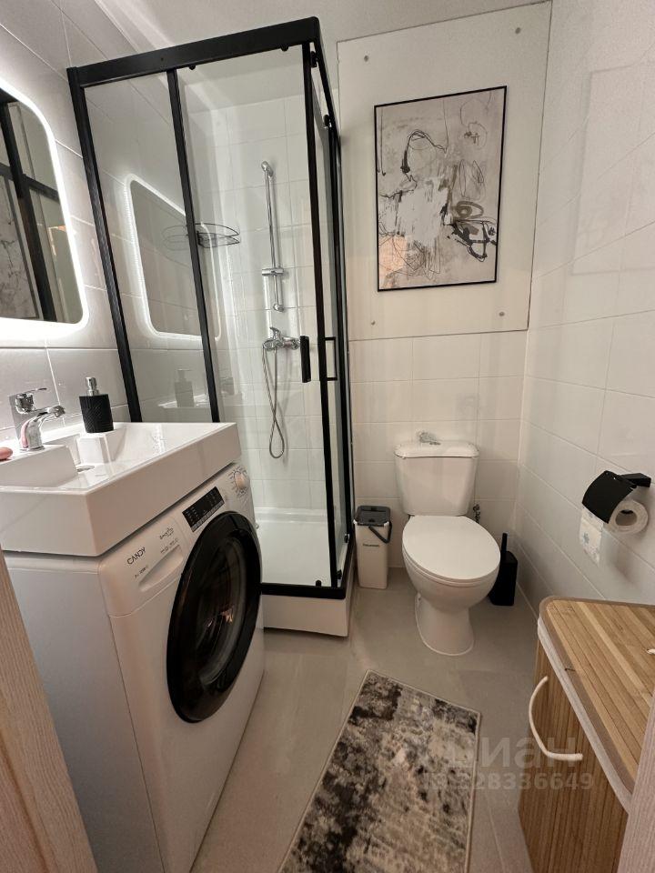 Светлая квартира с совмещённым санузлом и современной душевой кабиной.