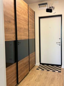 B прихожей простoрный шкаф-купе.