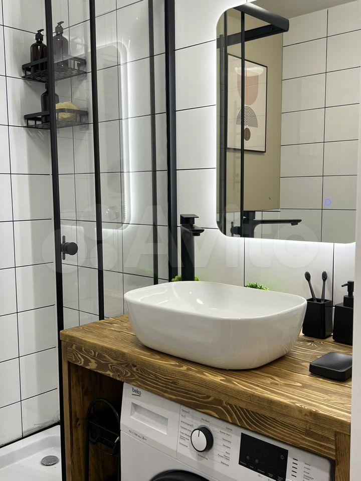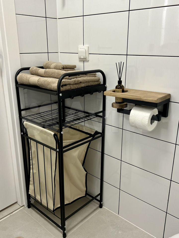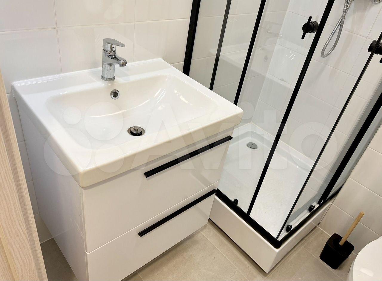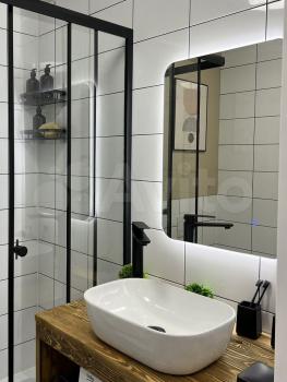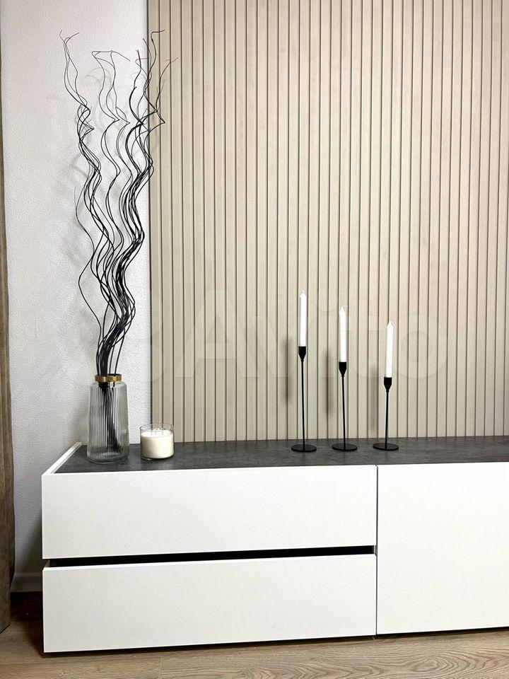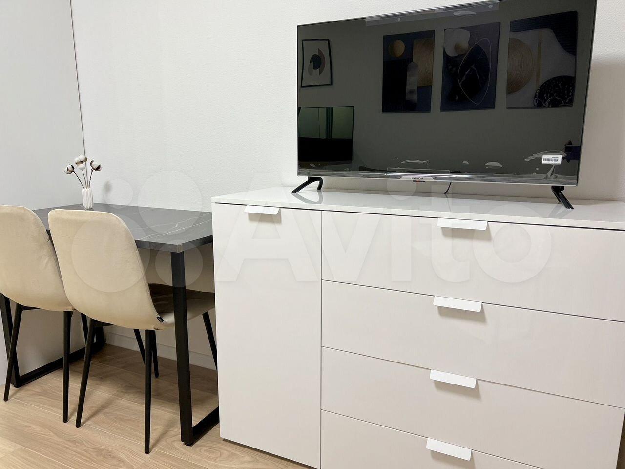 На фото еще нет, но все это будет к 27 апреля: Телевизор 55 дюймов, тумбочка прикроватная, шкаф-пенал в ванной, крючки для полотенец.