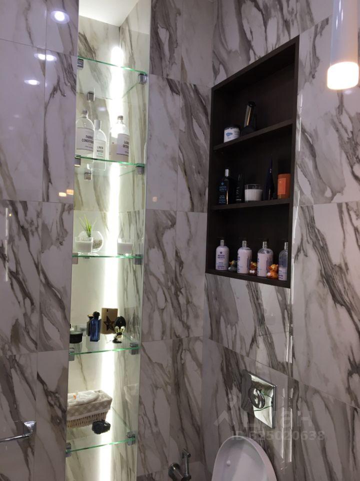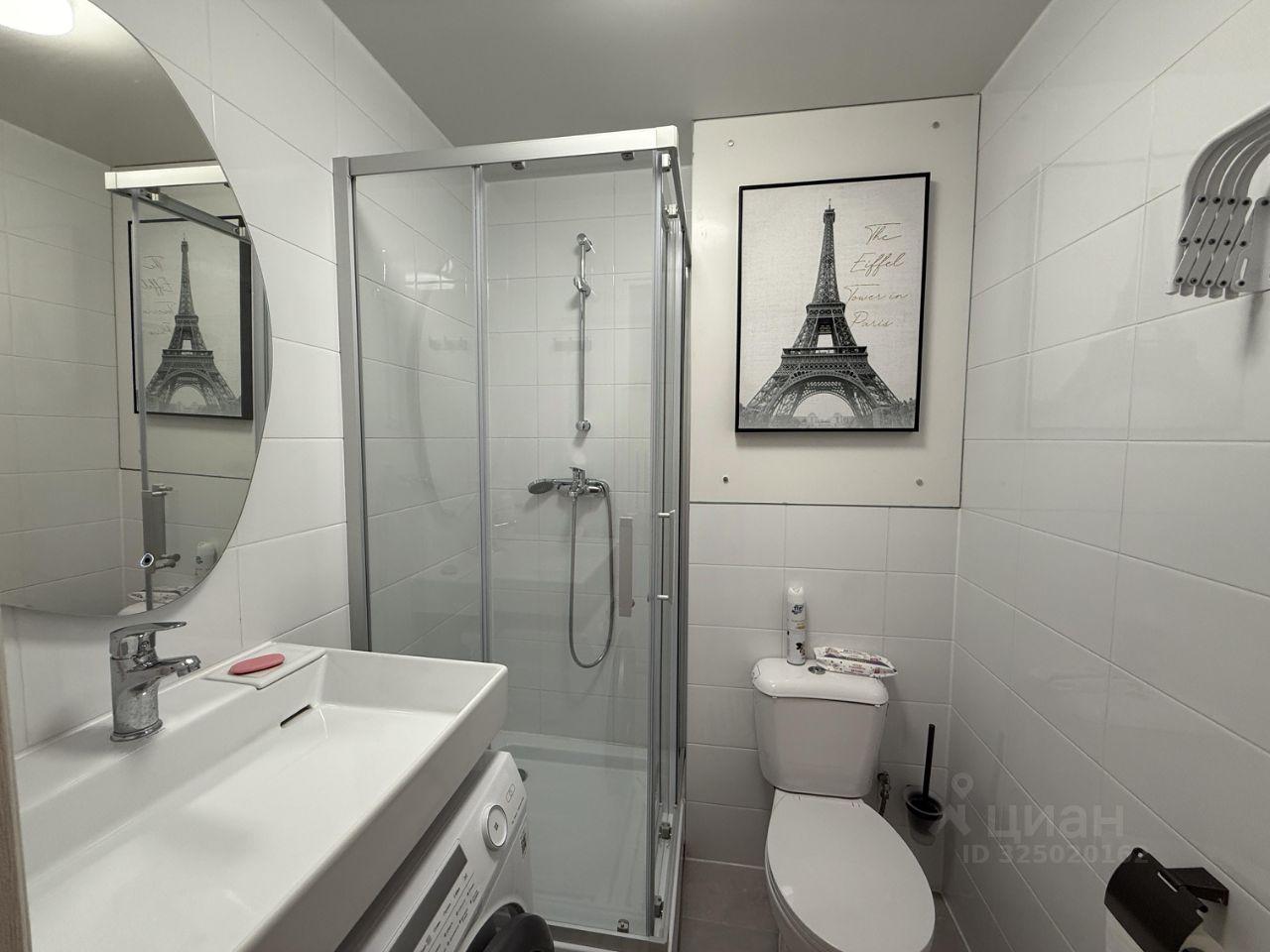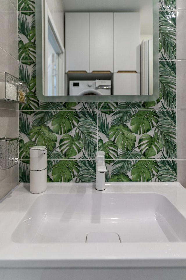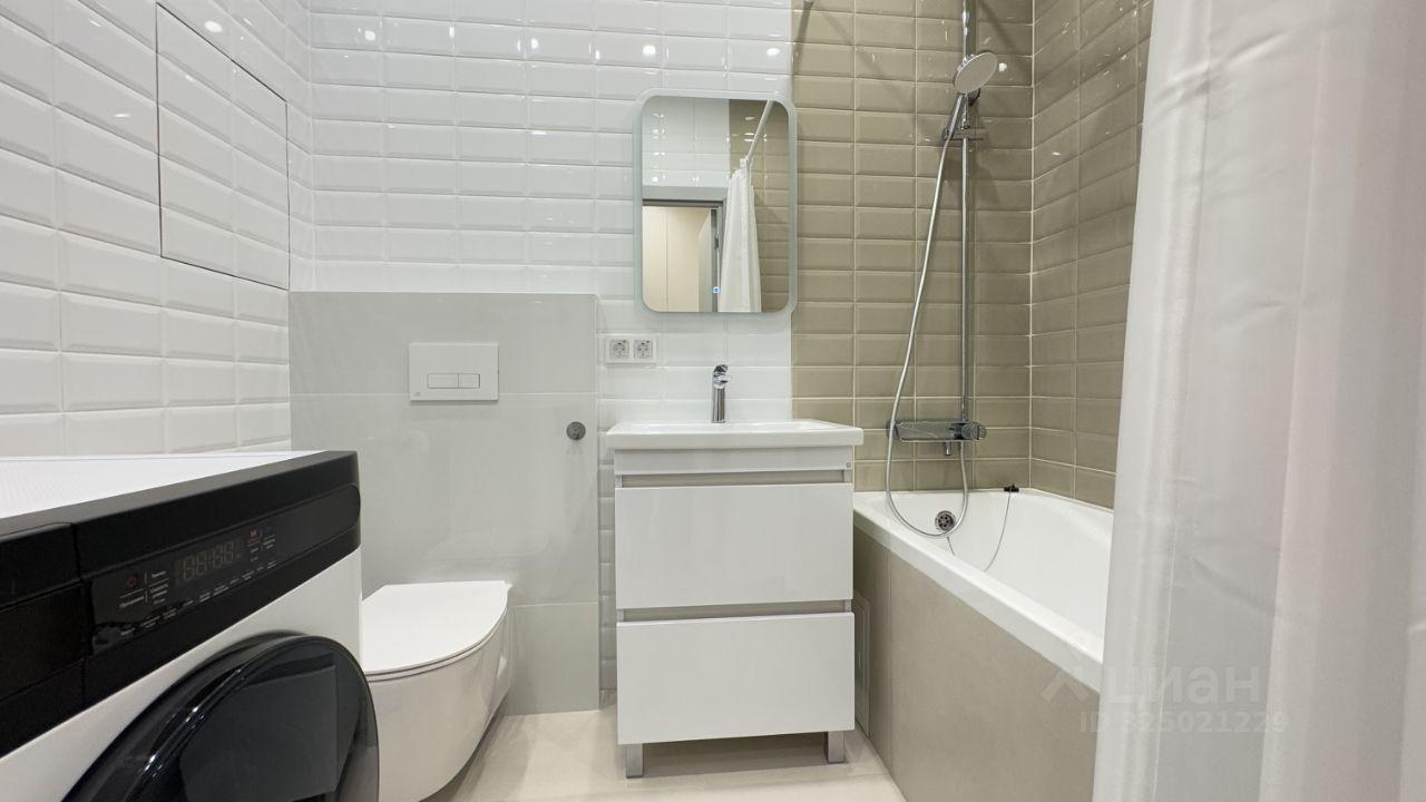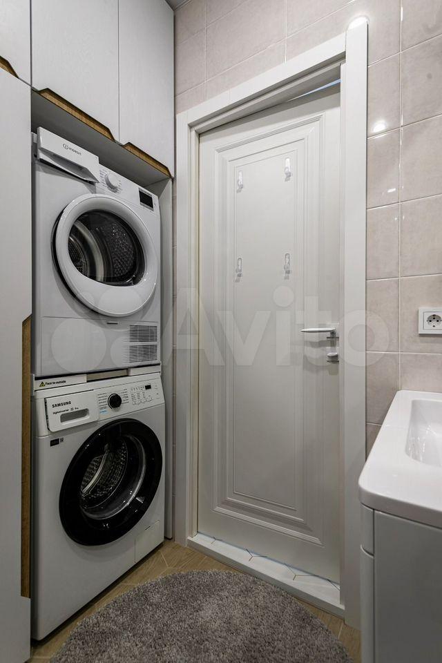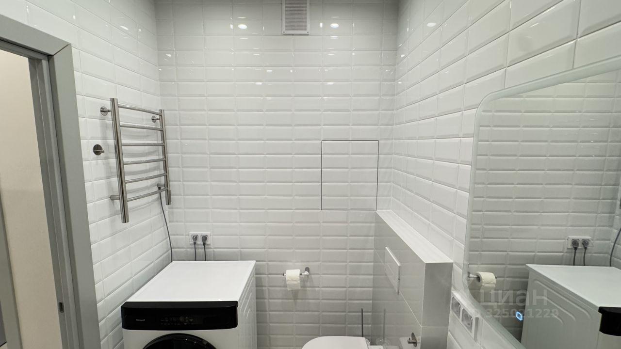 В ванной имеется стиральная машина Наiеr с функцией сушки; установлены электрический полотенцесушитель, а также функциональный шкафчик с зеркалом с функцией подсветки зеркала.
