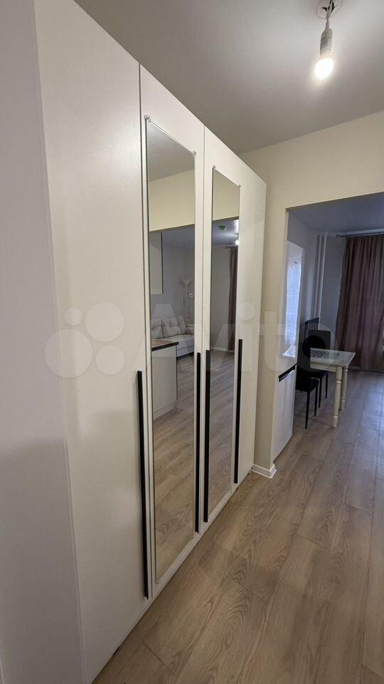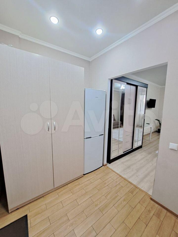 Общая площадь студии 20 метров. В квартире все предусмотрено для комфортного проживания : диван / кровать с ортопедическим матрасом , мягкие удобные обеденные стулья телевизор смарт тв 50 диагональ . Гладильная доска и утюг. Достаточное количество мест для хранения ( вместительный двухстворчатый шкаф в прихожей , трехстворчатый шкаф в комнате с антресолями ) светлая кухня с вытяжкой , подсветкой , электро плитой и духовым шкафом , чайником и микроволновой печкой . Кухня укомплектована новой посудой , кастрюли , сковорода, тарелки , вилки )