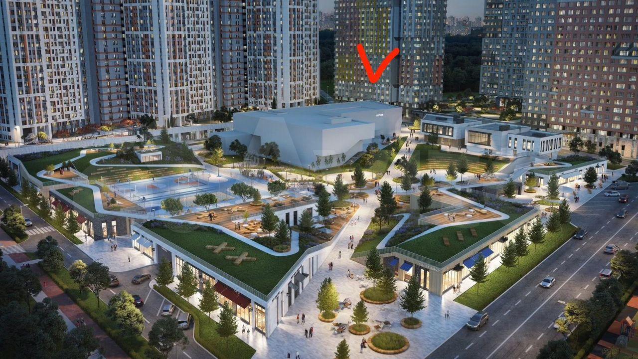 Рядом ТЦ «Небо», парк с прудом, в 30 минутах — Мещерский парк и горнолыжный склон «Ново-Переделкино».