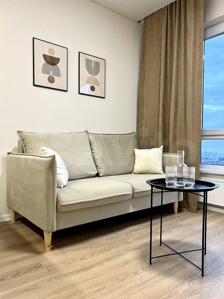 Студия в новом жилом комплексе Лучи, от метро 3 мин пешком, комната 22,5 кв м, в студии есть все необходимое для комфортного проживания: мебель (кровать с ортопедическим матрасом, кухонный гарнитур с интегрированным столом, стулья, 2 трехстворчатых шкафа); бытовая техника (духовая печь,посудомойка, варочная панель, чайник, холодильник, стиральная машина с сушилкой, телевизор, водонагреватель, кондиционер); Wi-fi.