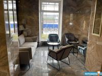 В доме современная входная группа и отремонтированные места общего пользования. Лаунж-зона с мягкой дизайнерской мебелью, кофейные аппараты и аппараты со снеками.