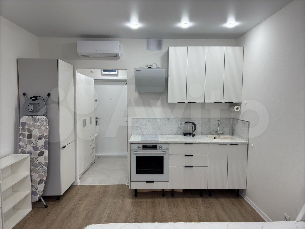 Компактная студия 30 м. Холодильник, СВЧ-печь, стиральная машина. Высокие потолки, огороженная территория, охрана. Сдаётся на до тельных срок гражданам РФ без маленьких детей и животных.