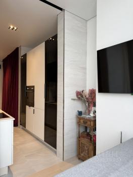 Студия оборудована всем необходимым, в том числе стиральной машиной, варочной поверхностью, , микроволновкой, , телевизором.