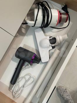 В квартире есть: пылесос, утюг, гладильная доска, чайник, вся посуда и текстилб, фен, сушилка, бокалы.