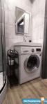 ✅ Мебель: удобный диван (конечно же, раскладной, с отсеком под постельное белье и небольшим столиком в качестве подоконника), рабочая зона возле окна, вместительные кухня, тумба и платяной шкаф-купе, есть кондиционер. Кухонная зона оснащена всем необходимым: барный стол и стулья, электрическая плита с духовкой, вытяжка с подсветкой, холодильник, микроволновая печь. В ванной душевая кабина, зеркало с подсветкой, электрический полотенцесушитель, стиральная машина, которая весело поет, когда заканчивает стирку