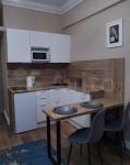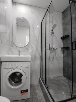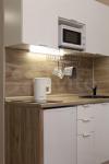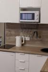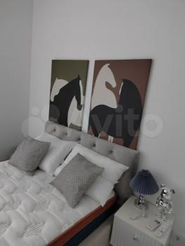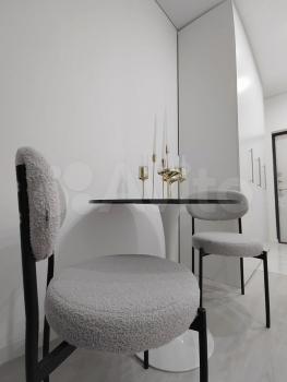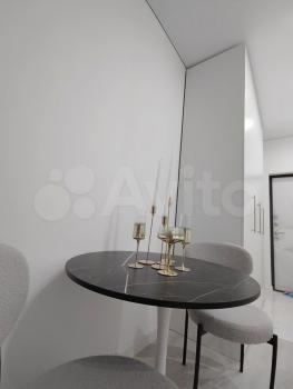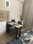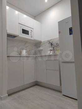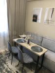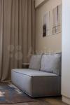 Светлый интерьер в спокойных тонах. Окна выходят во внутренний двор и на закрытую парковку ЖК. В апартаментах имеются: кухонный уголок, холодильник, варочная поверхность, микроволновка, необходимая посуда для приготовления, столовая посуда и приборы, диван-кровать с ортопедическим матрасом (спальное место в разложенном виде 146*200, не раскладывая – 80*200), 2 больших вместительных шкафа для хранения, стиральная машинка, утюг, гладильная доска.