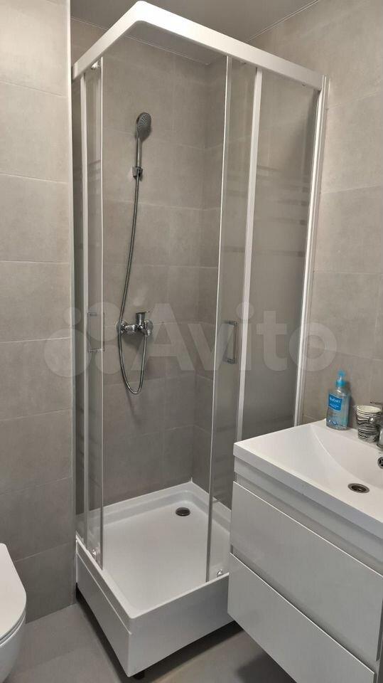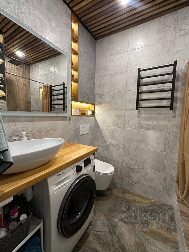 В ванной комнате : душ, туалет, стиральная машина, полотенцесушитель.