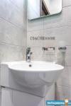В студии сделан дизайнерский ремонт. Есть вся необходимая мебель и бытовая техника, комплект посуды. Вид из окна на тихий двор, кровать с ортопедическим матрасом и тропический душ не оставят вас равнодушными. Комплектация студии позволяет заехать на длительный период с минимумом личных вещей.