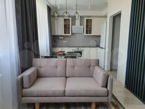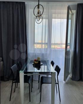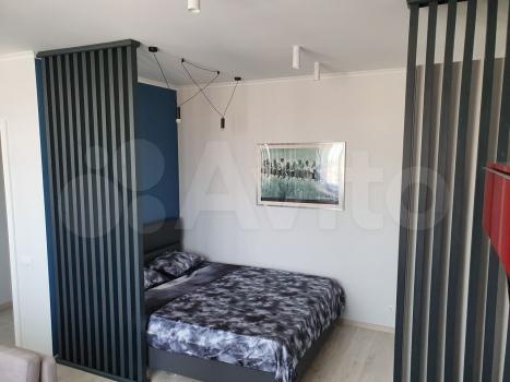 Студия, при этом большая кухня, гардероб, много места для хранения вещей, большая двуспальная кровать. Есть вся техника, кондиционер, духовка, посудомоечная машина, и тд. Лоджия с замечательным видом. Квартира светлая и очень комфортная.