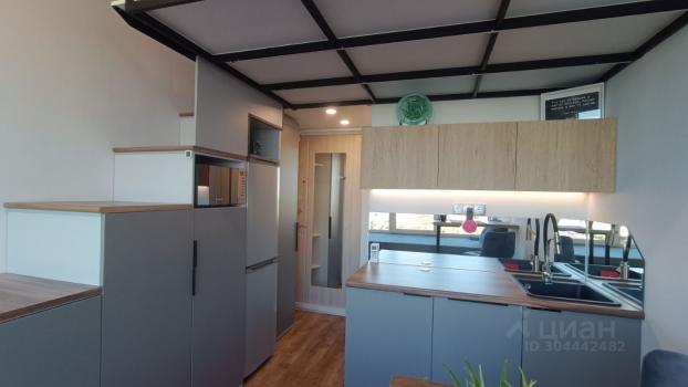 На первом этаже туалетная комната, кухня и зона отдыха, в виде большого подиума. На втором этаже полноценное спальное место с комфортной высотой и большой отдельный гардероб.