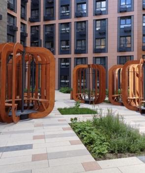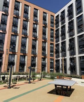 Охраняемая территория, есть внутренний двор с лаунж зоной, площадкой с тренажерами, шезлонгами, теннисным столом и детской площадкой.
