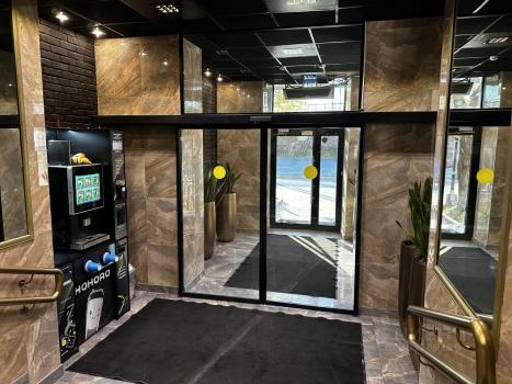 Высота потолка 3 метра, есть антресоль для доп хранения вещей. Круглосуточный консьерж сервис, автоматы с кофе и снеками в фойе.