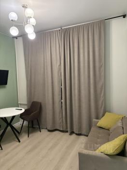 В квартире сделан дизайнерский ремонт, что приятно порадует своим вкусом и уютом. Есть вся необходимая мебель как на кухне, так и в комнате. Установлена современная техника: кондиционер, холодильник, посудомоечная и стиральная машины, телевизор, водонагреватель. Возможно дооснащение студии по потребностям арендатора. В санузле оборудована душевая кабина. Все стены, пол и потолок шумоизолированы. Квартира сдаётся впервые, ранее в ней никто не жил. Окна выходят во двор, поэтому здесь тихо и спокойно.