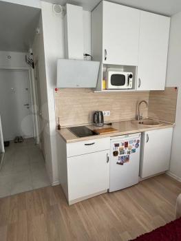 В квартире выполнен свежий ремонт от застройщика, что создает приятную атмосферу для проживания. Пространство студии грамотно организовано: есть удобная мебель и необходимая техника, включая холодильник, телевизор и стиральную машину.