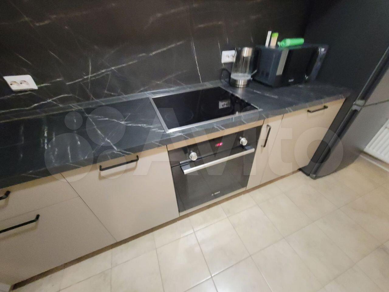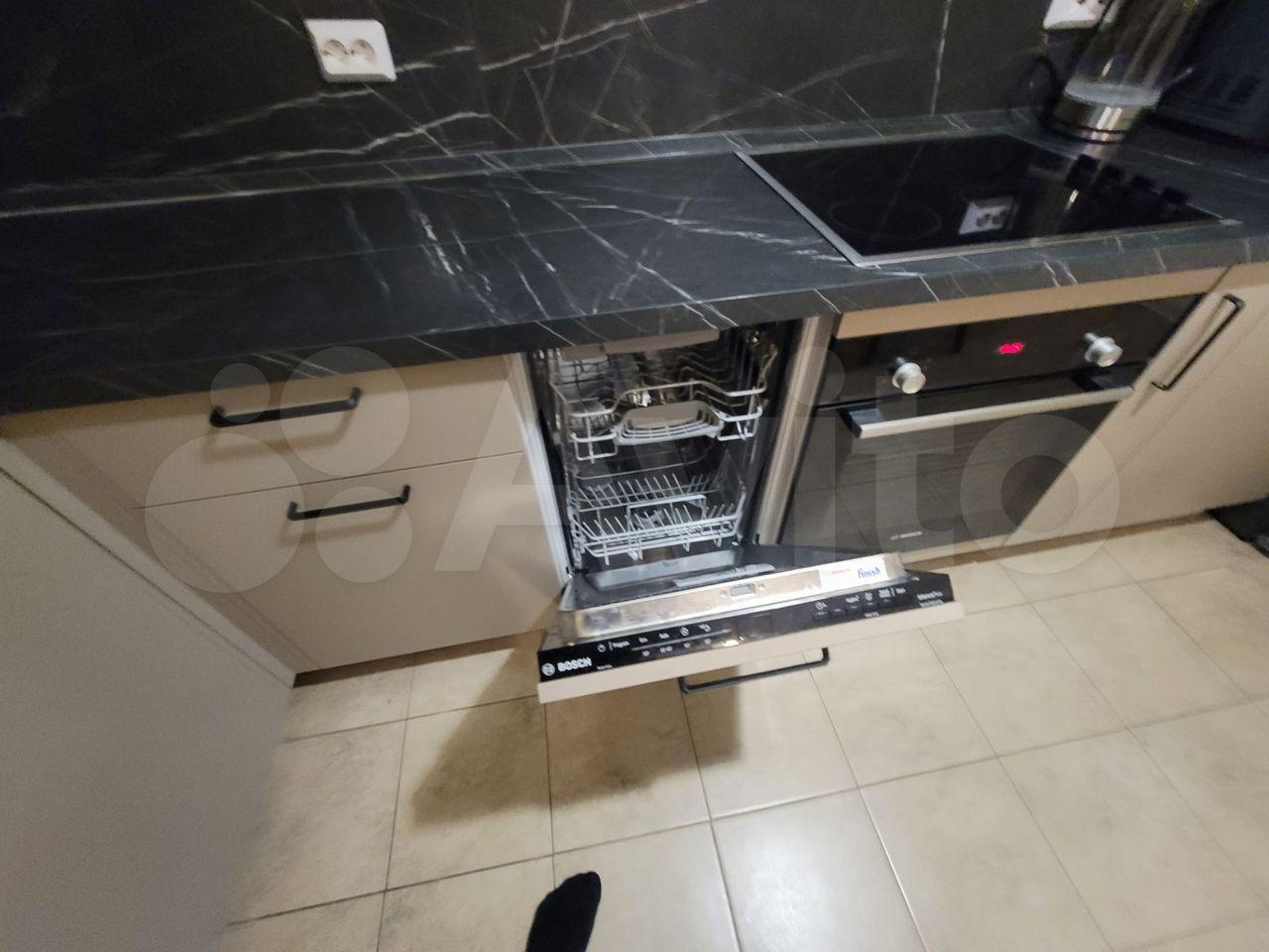 Вся необходимая бытовая техника: холодильник, варочная панель, духовой шкаф, микроволновая печь, стиральная машина.