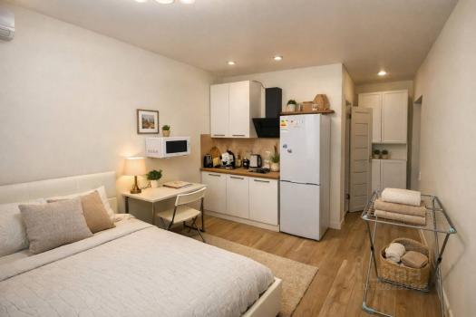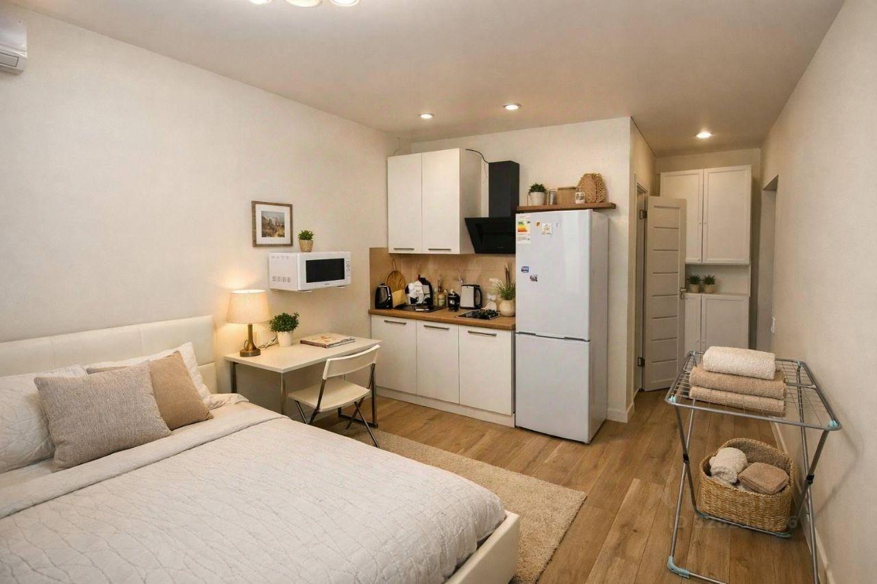 Впервые сдаётся светлая студия с евроремонтом, новой мебелью и техникой, посудой, ...