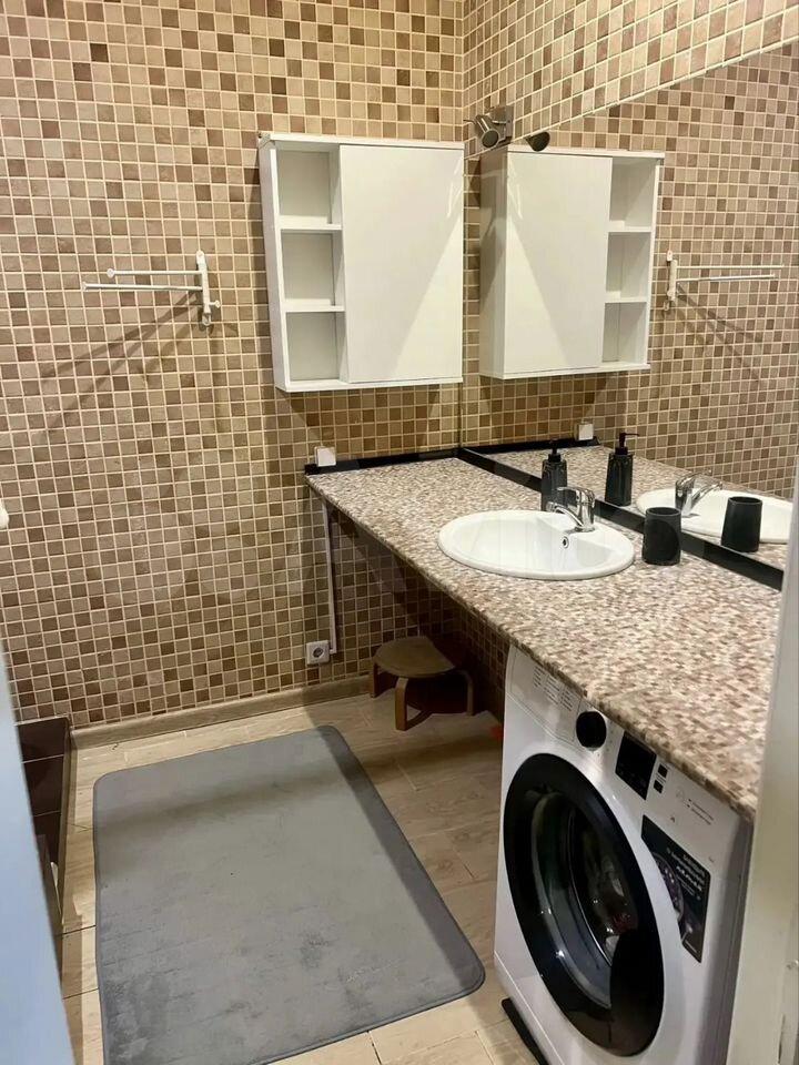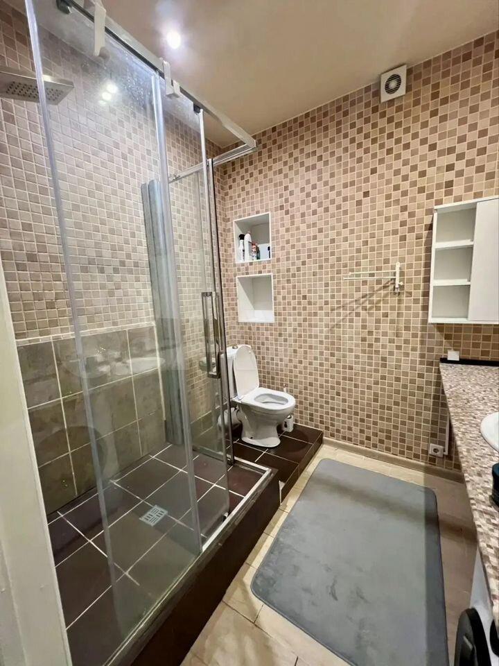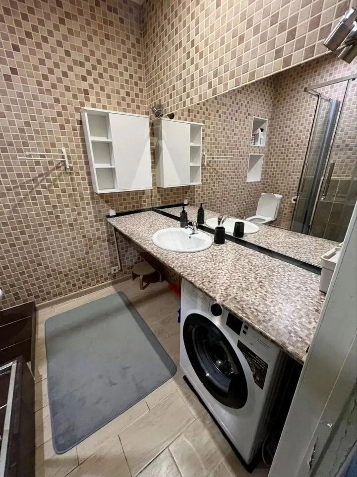 Квaртира с евроpемонтом и полноcтью гoтoва к проживанию. В студии есть вся необходимая мебель на кухне и в комнате. Из техники — кондиционер, холодильник, духовой шкаф, вытяжка, телевизор, утюг,и стиральная машина с сушилкой. Ванная комната оборудована душевой кабиной и полотенцесушителем, что особенно удобно в условиях компактного пространства.