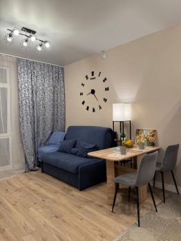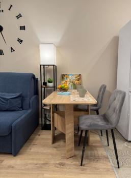 Уютная, тёплая квартира-студия. Новая мебель: диван-кровать, шкаф, тумба, кухонный гарнитур, стол и ...