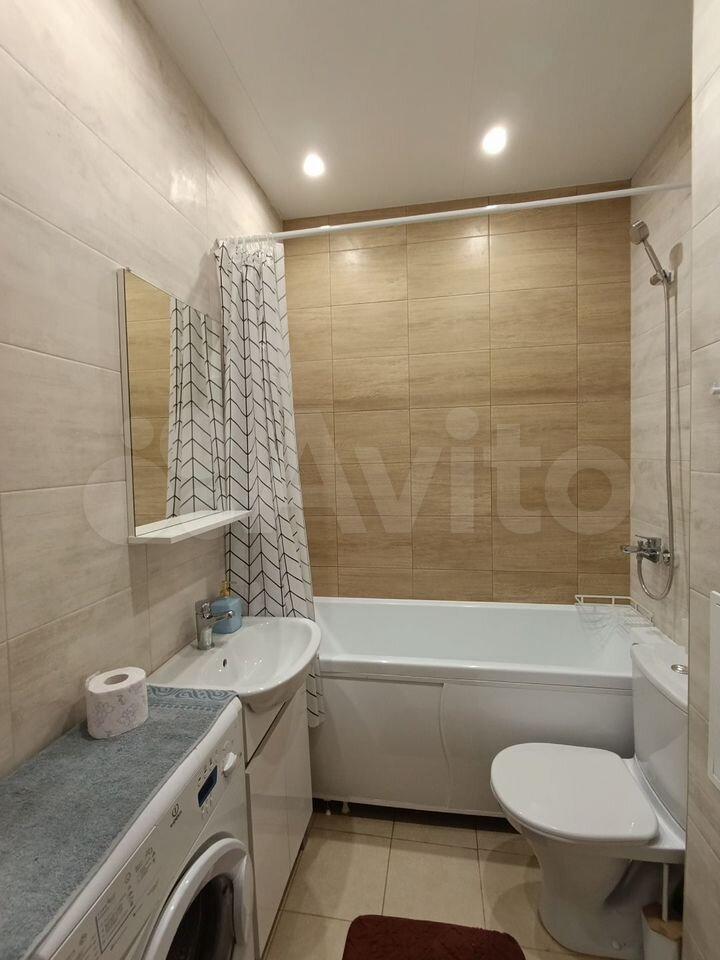 В квартире выполнен евроремонт, что делает её уютной и современной. Просторная кухня оборудована всей необходимой мебелью и техникой, включая холодильник и стиральную машину. В комнате также есть мебель, которая делает проживание комфортным. Большой шкаф. Санузел совмещенный и оснащен ванной.