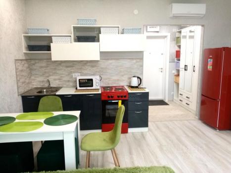Красивая видовая. Квартира студия. Сдается впервые. Новая мебель. Новая техника. Желательно без животный и без детей. Верхний этаж без верхних соседей! На первом этаже магазины аптеки кофе булочная и пр. Собственник. На длительный срок.