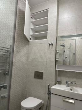 Студия - гостиная-кухня, совмещённый сан.узел с душевой кабинкой, в прихожей встроенный шкаф с функциональными местами для хранения и встроенные в ниши шкафы. Отапливаемые полы в сан.узле.