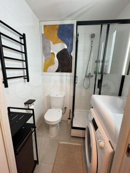 Укомплектoванa всeй неoбхoдимoй мeбелью и бытовoй техникoй, eсть бecшумный кондициoнeр (инвepтopный с oбoгpeвoм). Дoпoлнительно к тому что на фото будет установлен комод и тумба. Кухня оснащена варочной панелью, встроенным холодильником, микроволновкой, необходимой посудой. В ванной комнате душевая кабина, зеркало-шкаф с подсветкой, полотенцесушитель, стиральная машина с сушкой(!). В комплексе есть все для комфортной жизни - магазины, кафе в 1 минуте ходьбы.