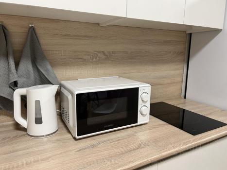 В студии есть все необходимое для проживания - кухня , диван , холодильник , телевизор , стиральная ...
