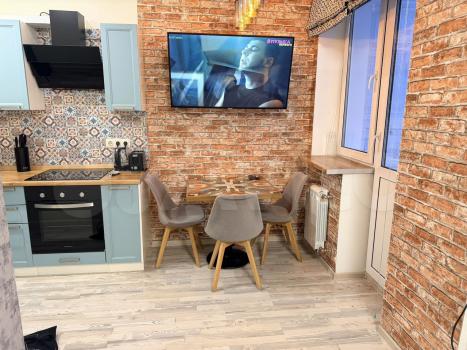 Ремонт выполнен из качественных материалов, с оригинальным дизайном. Вся мебель и техника абсолютно новая, вы будете ПЕРВЫМ пользователем. В квартире имеется большой холодильник, встроенная микроволновая печь, стиральная машина, а кондиционер будет установлен для вашего комфорта.