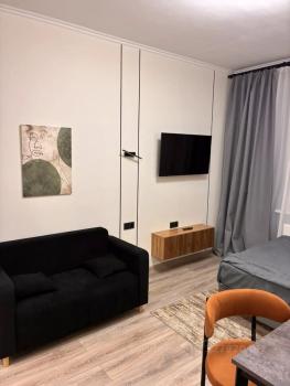 Сдается в аренду на длительный срок новая уютная студия, в которой есть все для комфортной жизни -диван-кровать, кухня с необходимой посудой , электроплита , дорогая техника ( бесшумный холодильник, стиральная машина Lg).