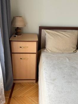 Квартира меблированная, имеется кровать, диван, 2 шкафа, письменный стол, телевизор, стиральная машина автомат, газовая плита, электрическая духовка, обеденный стол и стулья, холодильник и др. кухонная мебель, пылесос, гладильная доска.