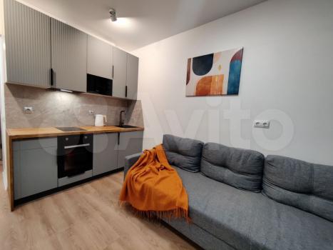 В квартире выполнен косметический ремонт. Комната и кухня обставлены мебелью, есть вся необходимая техника: холодильник и стиральная машина. В квартире подключён интернет, поэтому можно работать или учиться удалённо.